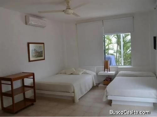 alcobas auxiliares cada una con su respectivo baño, closet y televisor plasma, Alcoba principal dotado su baño con jacuzzi, closet comedor, una amplia sala bien dotada, estar de televisión, cocina integral con todo menaje.Tiene su zona de piscina con jacuzzi y su respectivo estar, zona de BBQ con kiosco abierto con techo en madera y palma, cancha de futbol, vóleibol en arena de playa, cancha tejo largo y minitejo, parque infantil y una excelente zona verde. Cuenta con todos sus servicios junto con internet WI-FI, televisión satelital y aire acondicionado. La finca ofrece una excelente seguridad y además tiene unas zonas verdes muy amplias.