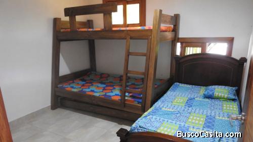 10 habitaciones con mamas dobles censillas tv aire cocina equipada sala de descanso zonas verdes arboles frutales