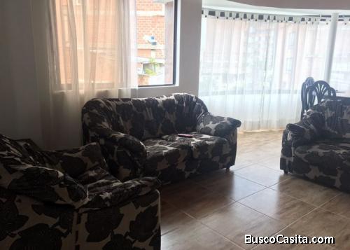 Renta de apartamentos amoblados en medellin Laureles, sector La América. Acogedor apartamento con una decoración moderna y sobria con varias ventanas que le dan buena luz. Inmueble con tres amplias alcobas una de ellas con baño privado. Queda en un primer piso, dándole fácil acceso y perfecto para los que sufren con las alturas adicional tiene 90 metros.