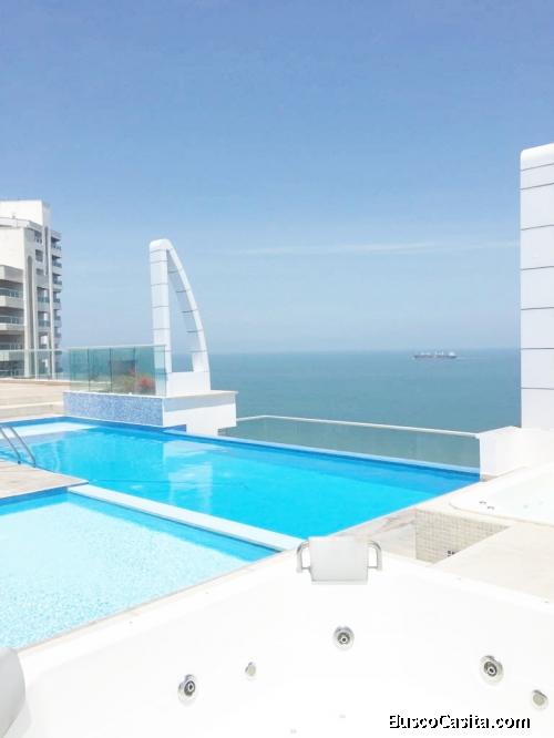 Inmobiliaria Taganga vende hermoso apartamento amoblado frente al mar, ubicado en el piso 13 en primera línea frente a la playa en uno de los mejores edificios de El Rodadero, Santa Marta.