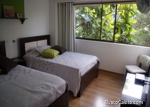 Alojamiento de Amoblados en El Poblado, Sector La Tomatera. BELLO apartamento de 3 cómodas habitaciones con sus baños cabinados, tiene baño social, sala, comedor, una cocina muy amplia de barra americana dotada de todo lo necesario para hacer de su estadía la mas placentera. La unidad cuenta con zonas húmedas, sauna, turco, juegos infantiles, salón social, parqueadero privado y vigilancia 24 horas para una mayor seguridad.