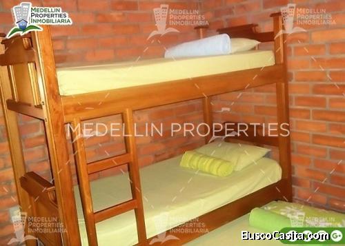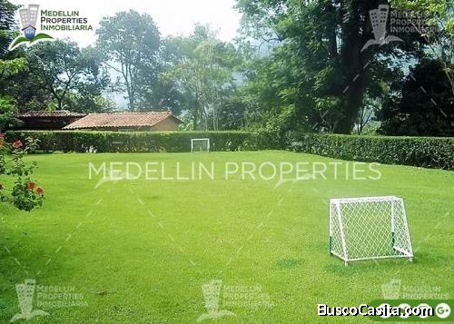 Baratas Fincas en Antioquia para Alquilar. La finca posee unas amplias zonas verdes muy bien mantenidas. Cuenta con una excelente piscina y un jacuzzi implementada además con un excelente juego de silletería de playa. La casa tiene un diseño muy original en su interior se encuentran cuatro cuartos todos equipados con camarotes triples, tres baños y la cocina está muy bien implementada. En el exterior se encuentra el kiosco y la zona de asados que cuenta con dos asadores además hay un lote mediano donde se puede acampar y para la piscina se prestan juegos como neumáticos, flotadores, pistola de agua entre otros. Además, cuenta con una excelente zona de parqueo, la entrada a la finca es por medio de rieles La finca en general se encuentra en muy buen estado y está muy bien decorada, la finca se encuentra totalmente enmallada y se encuentra en un sector de alta tranquilidad que garantiza un total descanso...