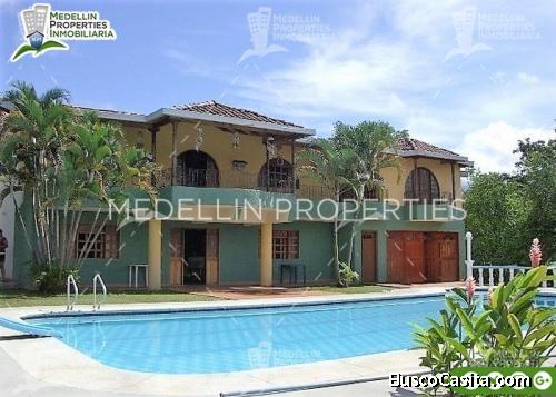 Baratas Fincas en Antioquia para Alquilar. Hermosa y Agradable para disfrutar un fin de semana en clima caliente, con familiares y amigos. La casa tiene cuartos amplios y frescos, piso en cerámica, balcón grande frente de la piscina, con ventiladores en cada cuarto, 3 baños y una cocina amplia, sencilla y confortable. En la finca hay enormes palmeras, kiosco, piscina y un Asadero bien dotado por fogón de leña, lavamanos y barra americana...