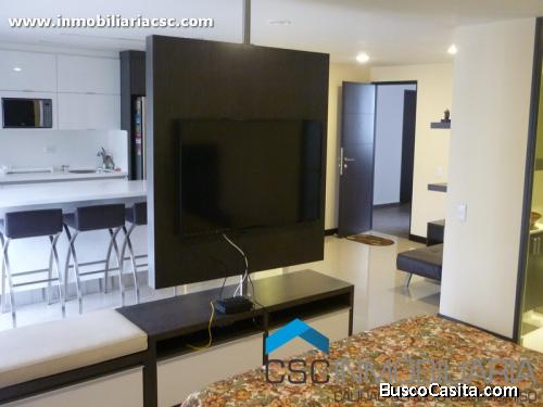 Alquiler de aparta-estudios Amoblados código. AP27 de 50 mts² un solo ambiente, cuenta con dos baños solo uno con ducha, cuenta con cocina integral moderna completamente dotada, zona de ropas, balcón con bonita vista, excelente iluminación natural, cama doble, televisor con tablero en madera giratorio, línea telefónica, internet, vestier, sofá cama, piso alto, seguridad 24 horas, juegos infantiles, salón social, gimnasio, piscina, turco. Acceso en carretera pavimentada tan solo a unas cuadras del centro comercial el tesoro, parque lleras a quince minutos, excelente servicio de transporte público, restaurantes, discotecas y bancos. Para mayor información sobre esta y otras propiedades comunícate 3137933725 infocscamoblados será un gusto poder asesorarle. https://facebook/apartamentosamobladoscsc/
