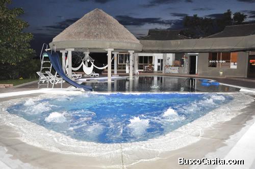 PISCINA Y JACUZZI CLIMATIZADO,LUCES ROBOTICAS Y FULL EQUIPO DE SONIDO CON AMPLIFICADOR Y SISTEMA BLU-RAY 4 MESAS DE BILLAR 3 ANDAS Y POOL,SILLAS ASOLEDORAS PARA UN BRONCEAO NATURAL EN BIKINI,JUEGOS DE MESA COMO CARTAS DOMINIO PARQUES DAMAS CHINAS,YENGA,Y TWISTER,MAQUINITAS PARA NIÑOS,MINIFUTBOLITO,Y UN AMPLIO GIMNASIO PARA ENTRENAR TU CUERPO MIENTRAS DESCANSAS,SERVICIO DE EMPLEADA INCLUIDA,UNA MAGNIFICA PREPARACION DE ALIMENTOS MUY CAMPESTRE ZONA BBQ EQUIPADA PARA ASADOS SANCOCHOS PAELLAS O CANELAZOS,PARQUE INFANTIL, SALTARIN,VARIEDAD DE BALONES Y INLABLES PARA DISFRUTAR EN LA PISCINA,CAPILLA ABIERTA LAS 24 HORAS,SECTOR PRIVADO Y TRANQUILO CON CIRCUITO CERRADO DE CAMARAS DE TV Y VIGILANCIA LAS 24 HORAS,LAGO DE PESCA ANTIESTRES,SPA CON AROMATERAPIA Y CHOCOTERAPIA TE ESPERAMOS COMUNICATE CON NOSTROS ALQUILER COMPLETAENTE AMOBLADO COMUNICATE YA AL 3245067925