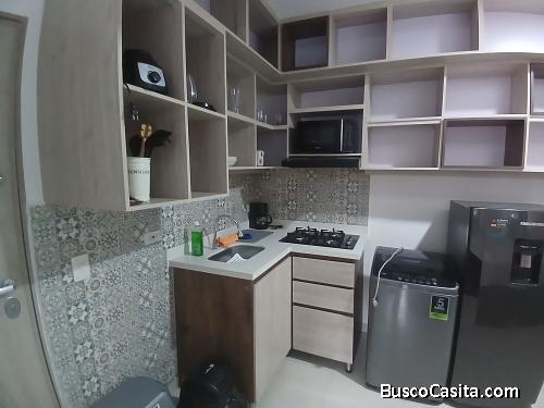Ubicado en el corazón de Medellín, sector Bombona, apartaestudio amoblado con cocina integral, mueble modular, baño, un solo ambiente con un balcón tipo terraza y cuarto útil en el mismo inmueble.