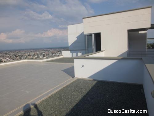La terraza con 143 M2 que permite el disfrute pleno del paisaje perimetral, este primer nivel se comparte con el parqueadero con área de 60 M2.