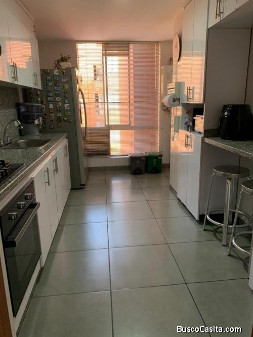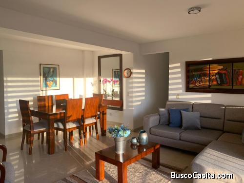 Cuenta con 115M2, con 3 alcobas, sala comedor con amplio balcón, cocina, zona de ropas, estudio, baño social , 2 habitaciones comparten baño, habitación principal con baño, doble estacionamiento en línea, depósito, blackouts en todas las habitaciones y estudio, Cortinas Sheer en todas las ventanas, todos los pisos fueron cambiados: porcelanato y en las habitaciones laminado en madera.