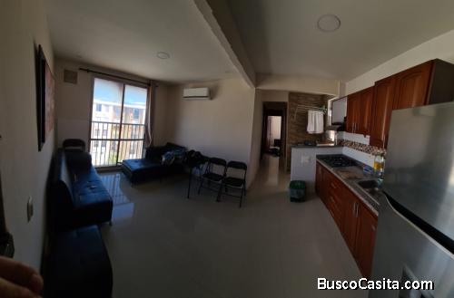 Apartamento amoblado de 50M² ubicado al 5º piso de un conjunto residencial, cuenta sala comedor, 3 habitaciones, 2 baños, parqueadero comunitario y piscina.